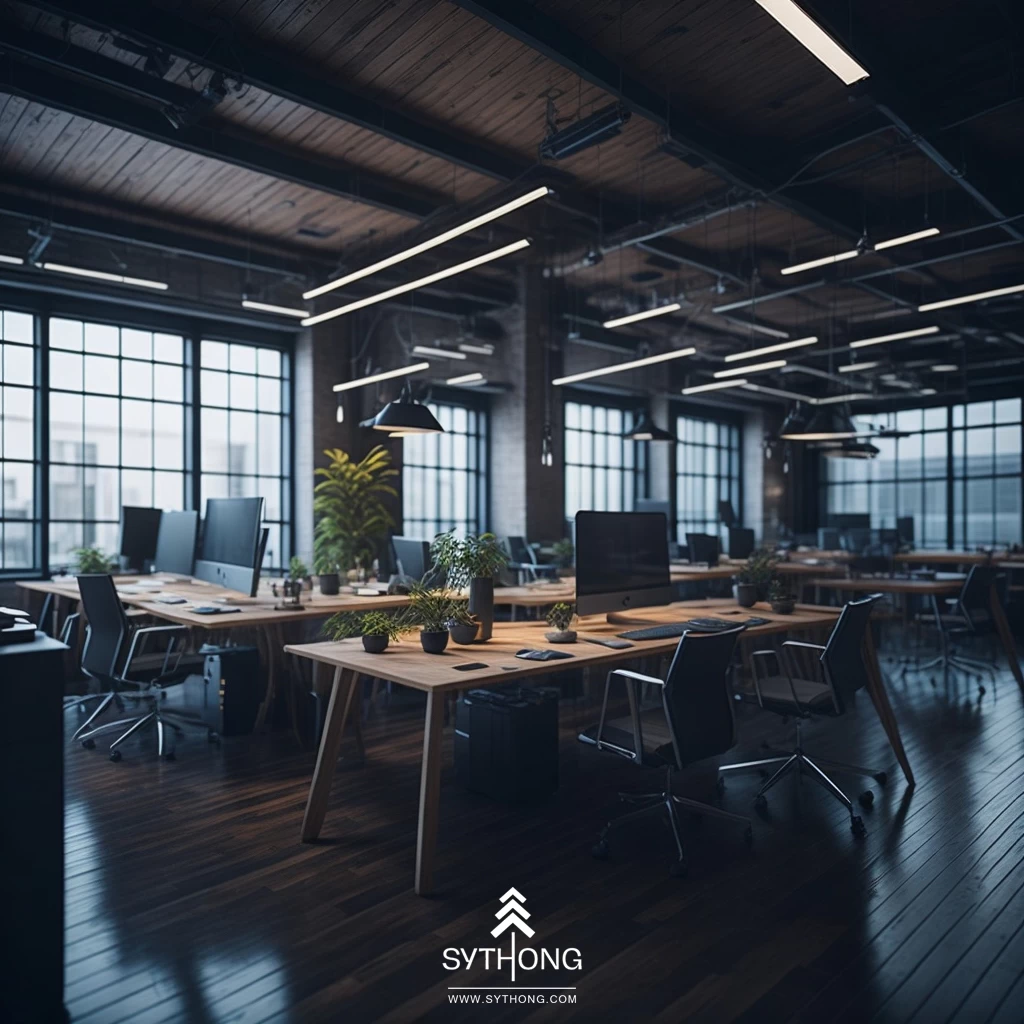 Nội thất văn phòng làm việc phong cách hiện đại, thiết kế đơn giản với sự kết hợp giữa chất liệu như gỗ, kim loại, kính và nhựa. Màu sắc chủ đạo đen, xám, trắng và màu gỗ tự nhiên. Văn phòng với đầy đủ các không gian chức năng như phòng làm việc chung, phòng họp, phòng giám đốc,... Không gian nội thất của văn phòng được thiết kế đảm bảo tính chuyên nghiệp, tiện nghi và thoải mái cho nhân viên để có thể đạt được hiệu quả tốt trong công việc.